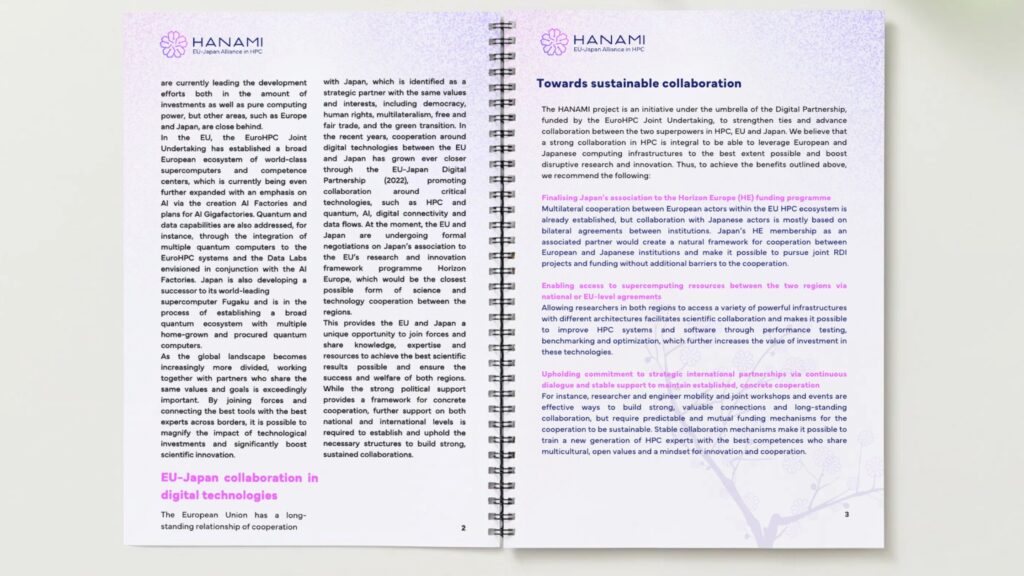 “Lasting collaboration always requires support from various surrounding frameworks, which we’re working towards in our future roadmap for HANAMI. We’re very glad to see the interest and active engagement of so many actors to discuss the future of HPC collaboration and make sure that the efforts to foster innovation through HPC and the impact it can create for science stay an essential part of EU-Japan cooperation”, states Pihla Kauranen, acting leader of the HANAMI work focusing on the sustainability of collaboration.