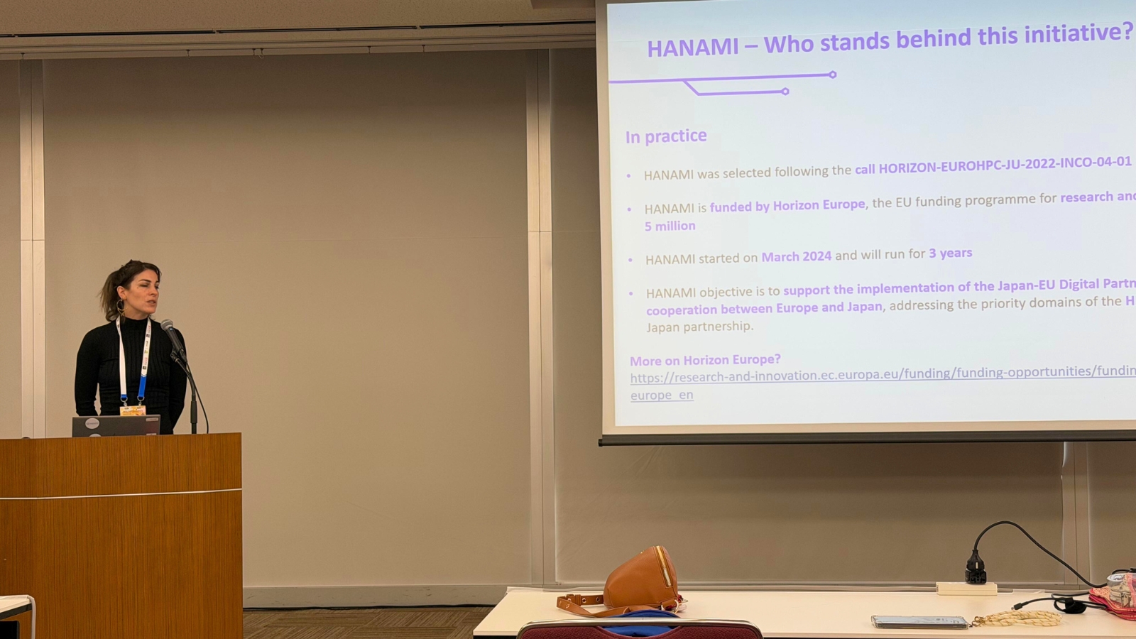 During the conference, HANAMI hosted the invited session “HANAMI – Bridging Europe & Japan through High-Performance Computing”, which showcased joint scientific projects led by European and Japanese teams. The session provided insights into the current and future directions of EU–Japan cooperation across HPC, artificial intelligence (AI), quantum computing, climate and weather modelling, materials sciences, and biomedical science, supported by contributions from the European Commission, MEXT, and EuroHPC.